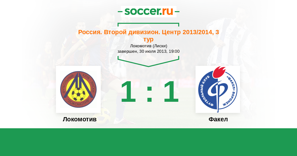 Россия. Вторая лига. Группа 3 21.09.2014 Локомотив Логотип футбольный клуб Локомотив (Лиски) 1:1 Логотип футбольный клуб Факел (Воронеж) Факел
