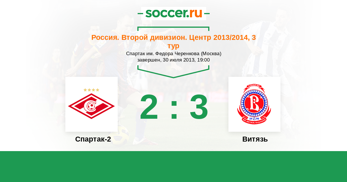 Россия. Вторая лига. Группа 3 18.10.2013 Витязь Логотип футбольный клуб Витязь (Подольск) 3:2 Логотип футбольный клуб Спартак-2 (Москва) Спартак-2