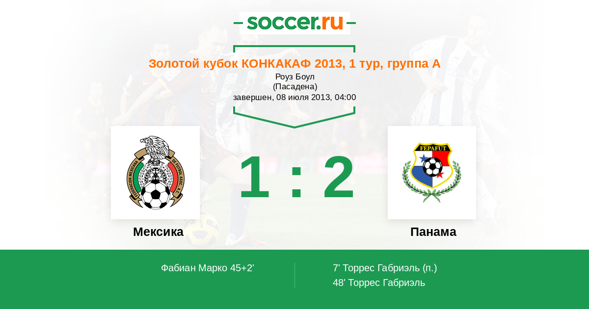 Золотой кубок КОНКАКАФ 25.07.2013 Панама Логотип Панама 2:1 Логотип Мексика Мексика