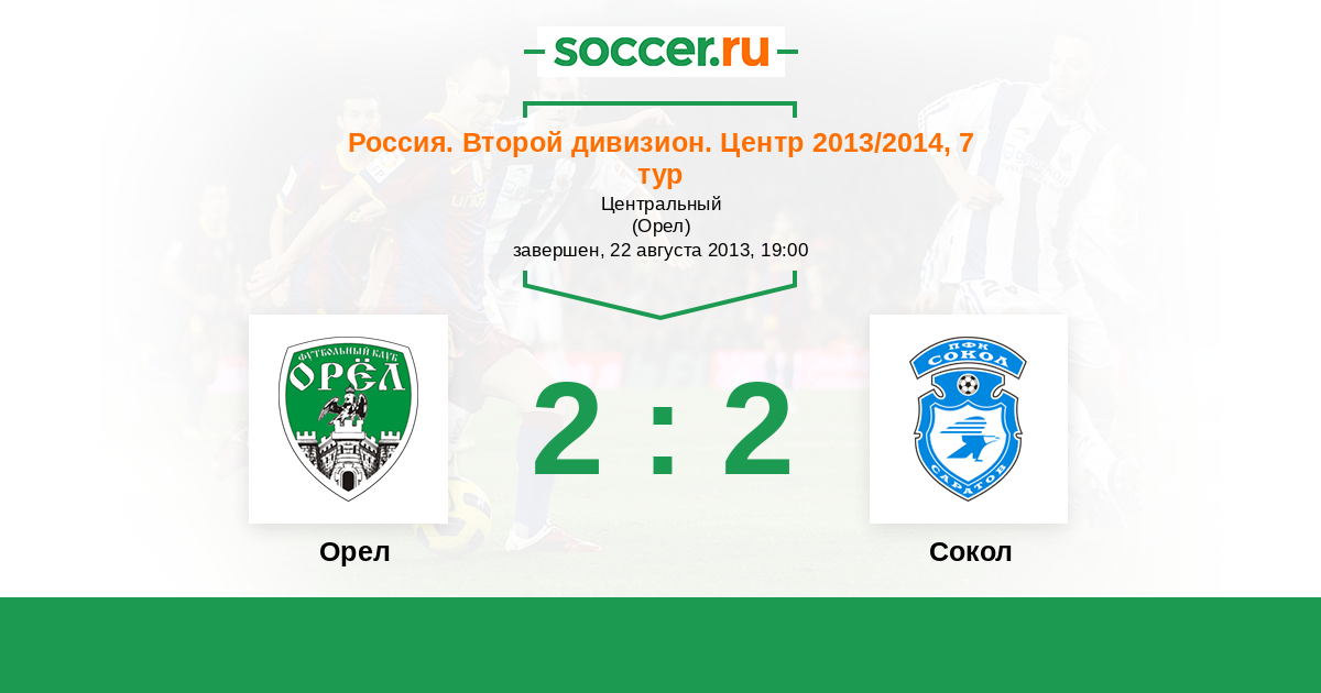 Россия. Вторая лига. Группа 3 15.04.2014 Сокол Логотип футбольный клуб Сокол (Саратов) 3:1 Логотип футбольный клуб Орел Орел