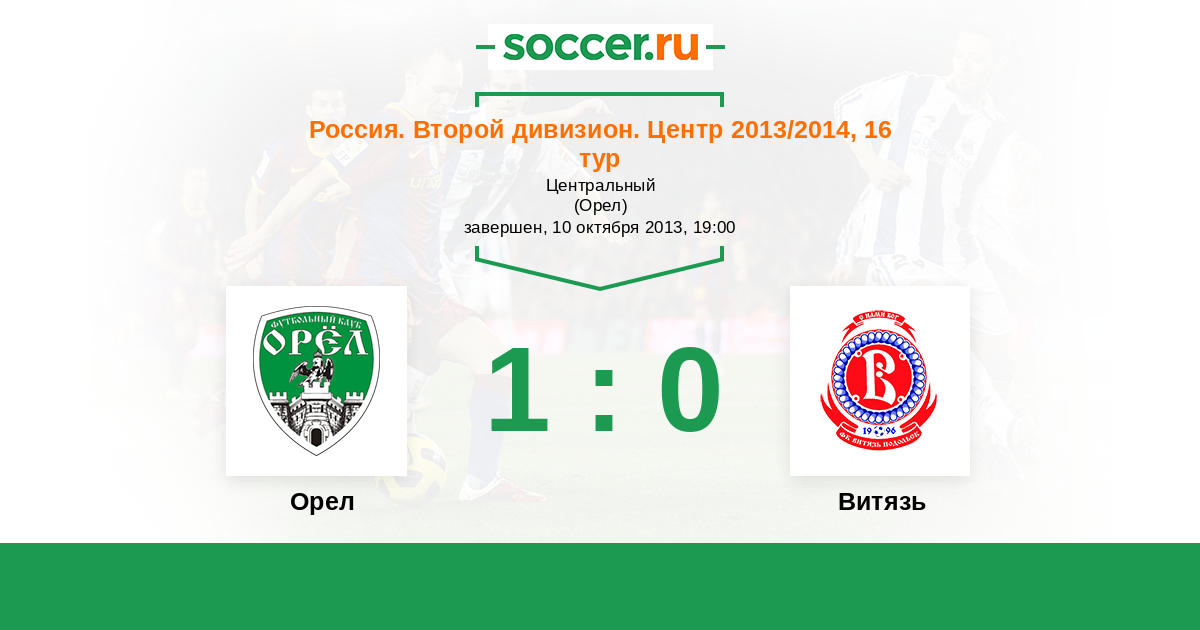 Россия. Вторая лига. Группа 3 22.07.2013 Витязь Логотип футбольный клуб Витязь (Подольск) 1:0 Логотип футбольный клуб Орел Орел