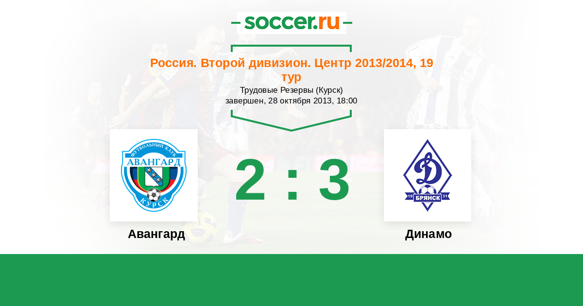 Россия. Вторая лига. Группа 3 28.08.2014 Авангард Логотип футбольный клуб Авангард (Курск) 1:2 Логотип футбольный клуб Динамо Брянск Динамо Брянск