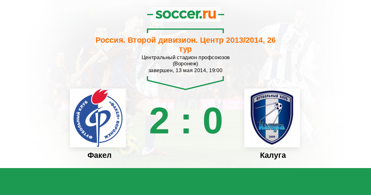 Россия. Вторая лига. Группа 3 25.07.2014 Факел Логотип футбольный клуб Факел (Воронеж) 1:0 Логотип футбольный клуб Калуга Калуга