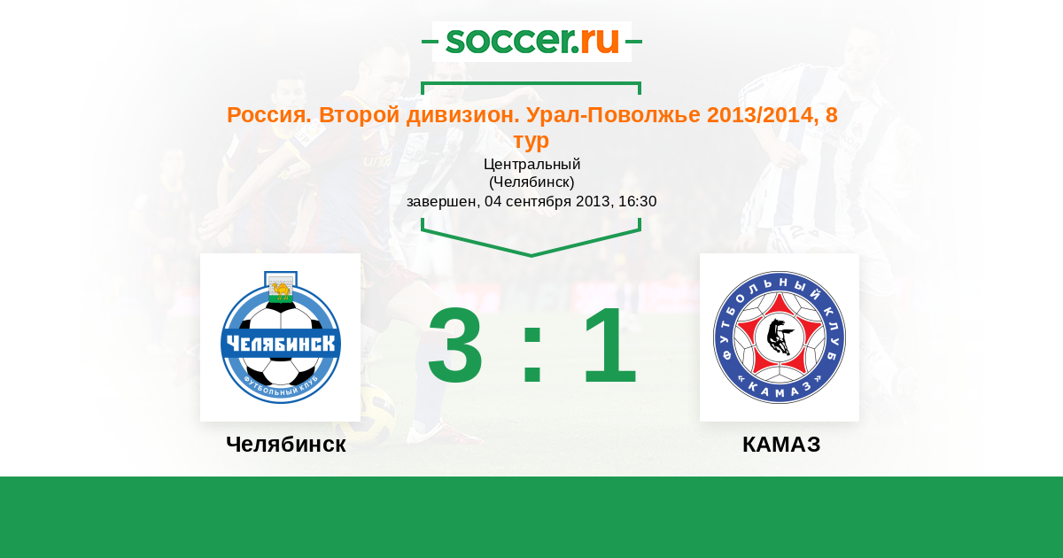 Россия. Вторая лига. Группа 4 05.09.2012 Челябинск Логотип футбольный клуб Челябинск 2:1 Логотип футбольный клуб КАМАЗ (Набережные Челны) КАМАЗ