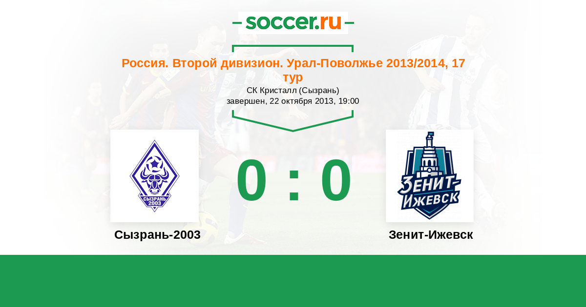 Россия. Вторая лига. Группа 4 27.08.2013 Зенит-Ижевск Логотип футбольный клуб Зенит-Ижевск 0:0 Логотип футбольный клуб Сызрань-2003 Сызрань-2003