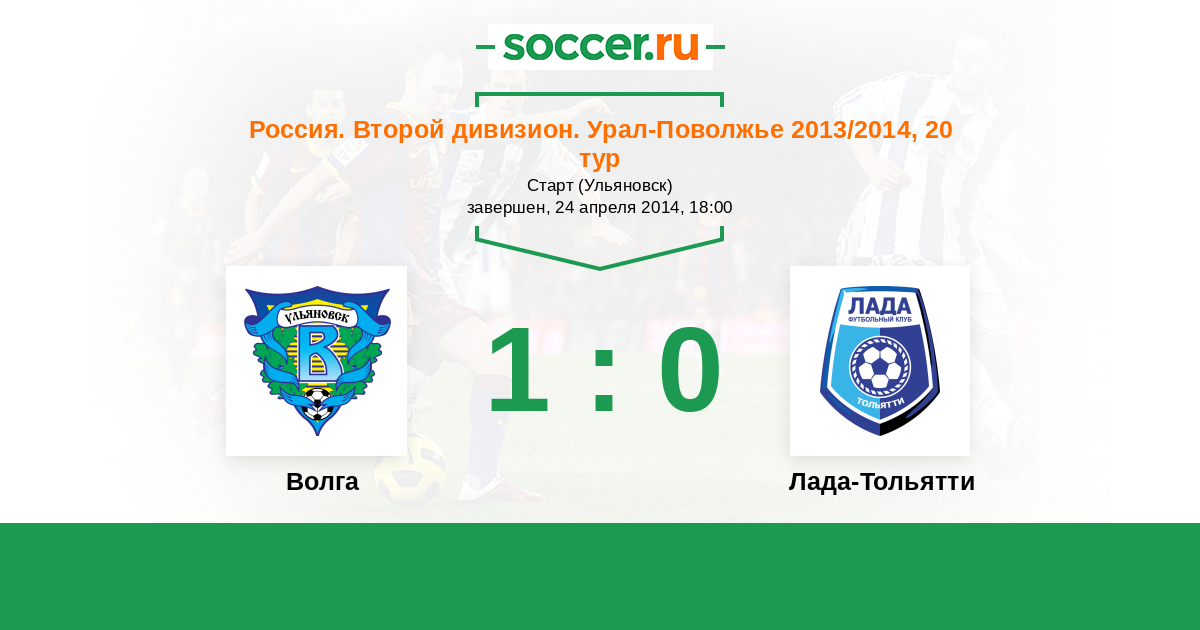 Россия. Вторая лига. Группа 4 14.09.2013 Лада-Тольятти Логотип футбольный клуб Лада-Тольятти 0:1 Логотип футбольный клуб Волга (Ульяновск) Волга
