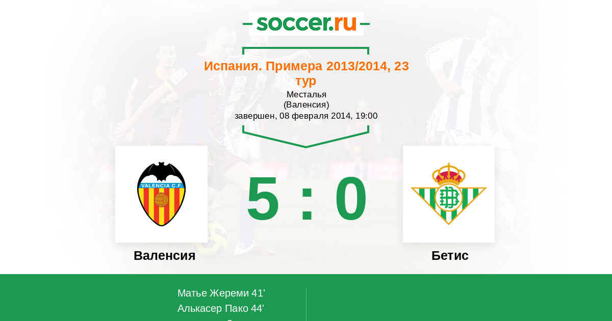 Испания. Примера 17.03.2013 Валенсия Логотип футбольный клуб Валенсия 3:0 Логотип футбольный клуб Бетис (Севилья) Бетис