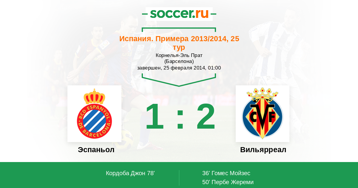 Испания. Примера 27.09.2013 Вильярреал Логотип футбольный клуб Вильярреал 2:1 Логотип футбольный клуб Эспаньол (Барселона) Эспаньол