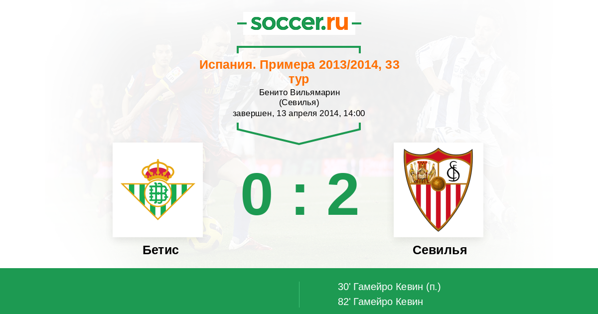 Испания. Примера 25.11.2013 Севилья Логотип футбольный клуб Севилья 4:0 Логотип футбольный клуб Бетис (Севилья) Бетис