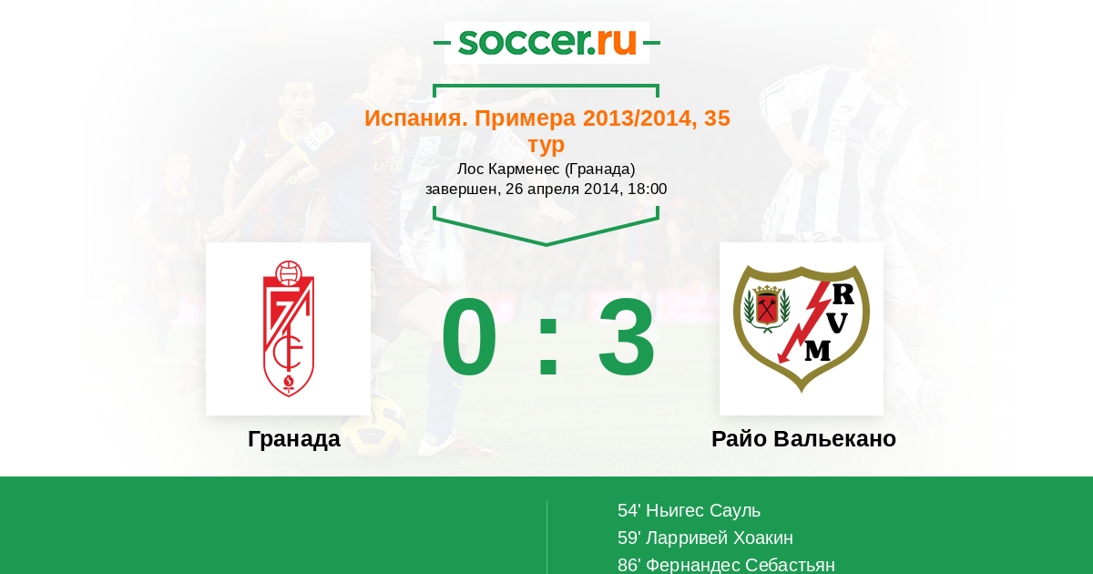 Испания. Примера 03.04.2022 Гранада Логотип футбольный клуб Гранада 2:2 Логотип футбольный клуб Райо Вальекано (Мадрид) Райо Вальекано