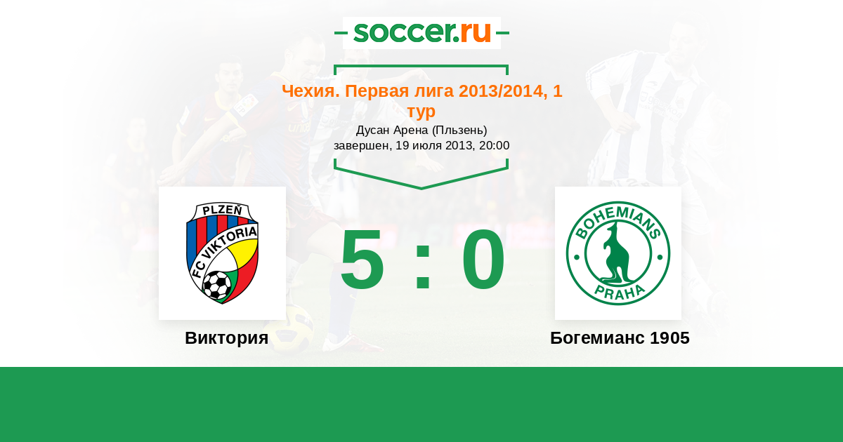 Чехия. Первая Лига 31.05.2014 Богемианс 1905 Логотип футбольный клуб Богемианс 1905 (Прага) 0:0 Логотип футбольный клуб Виктория (Пльзень) Виктория
