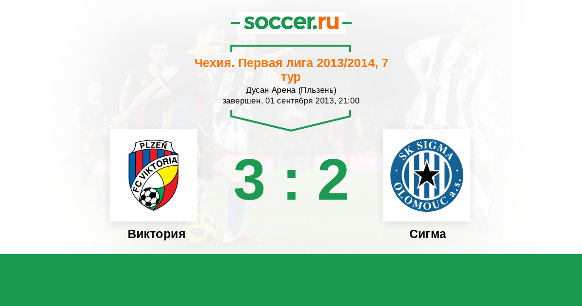 Чехия. Первая Лига 09.09.2011 Сигма Логотип футбольный клуб Сигма (Оломоуц) 2:3 Логотип футбольный клуб Виктория (Пльзень) Виктория