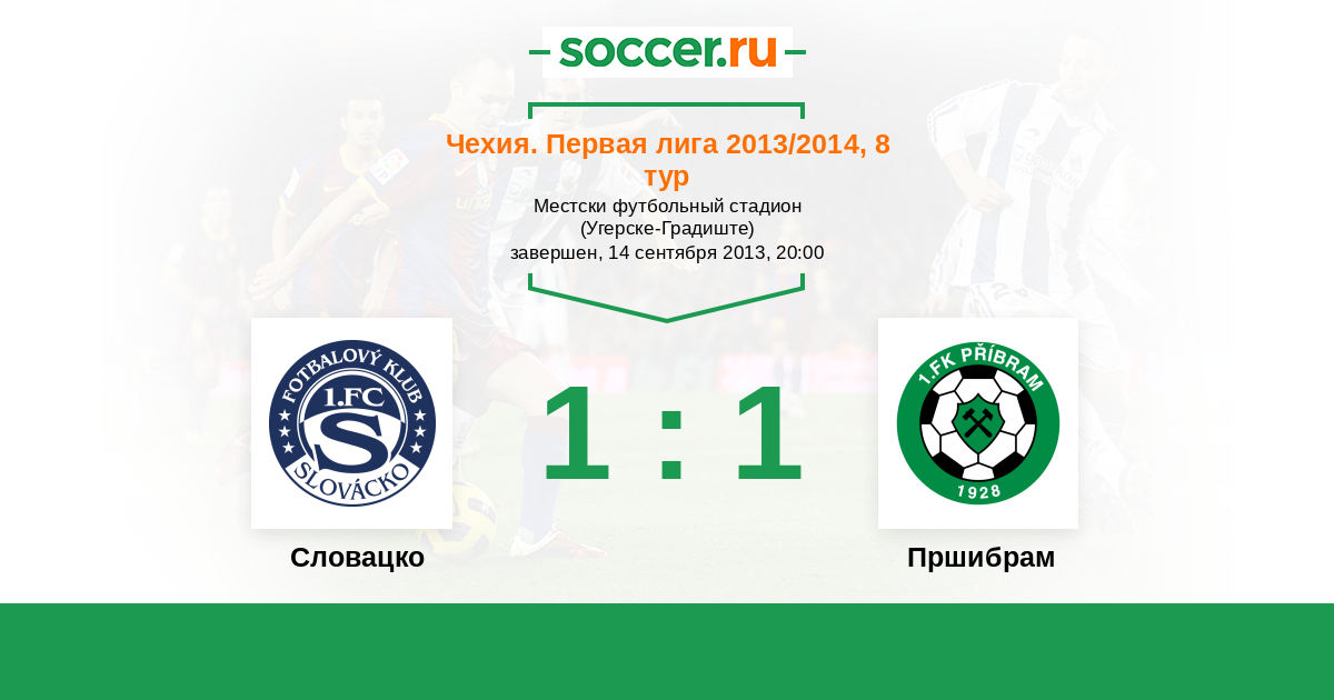 Чехия. Первая Лига 30.08.2014 Словацко Логотип футбольный клуб Словацко (Угерске-Градиште) 4:1 Логотип футбольный клуб Пршибрам Пршибрам