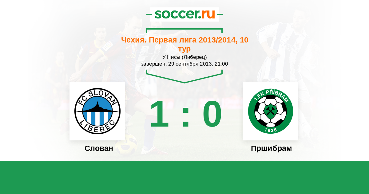 Чехия. Первая Лига 01.06.2013 Слован Логотип футбольный клуб Слован (Либерец) 1:1 Логотип футбольный клуб Пршибрам Пршибрам