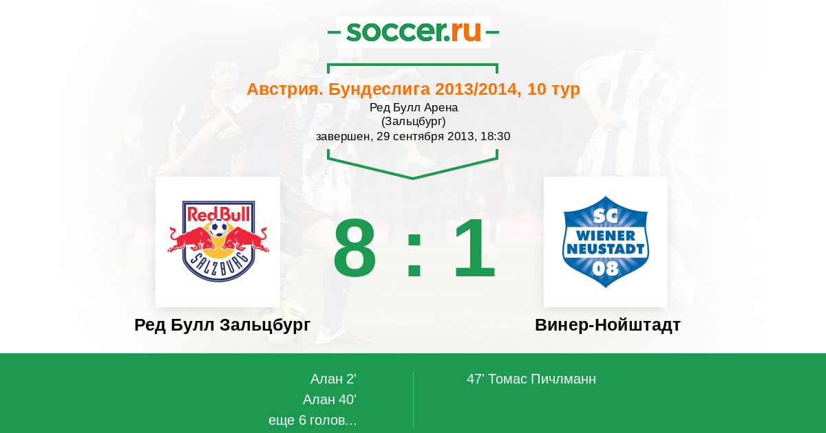 Австрия. Бундеслига 23.03.2014 Ред Булл Зальцбург Логотип футбольный клуб Ред Булл Зальцбург 5:0 Логотип футбольный клуб Винер-Нойштадт Винер-Нойштадт