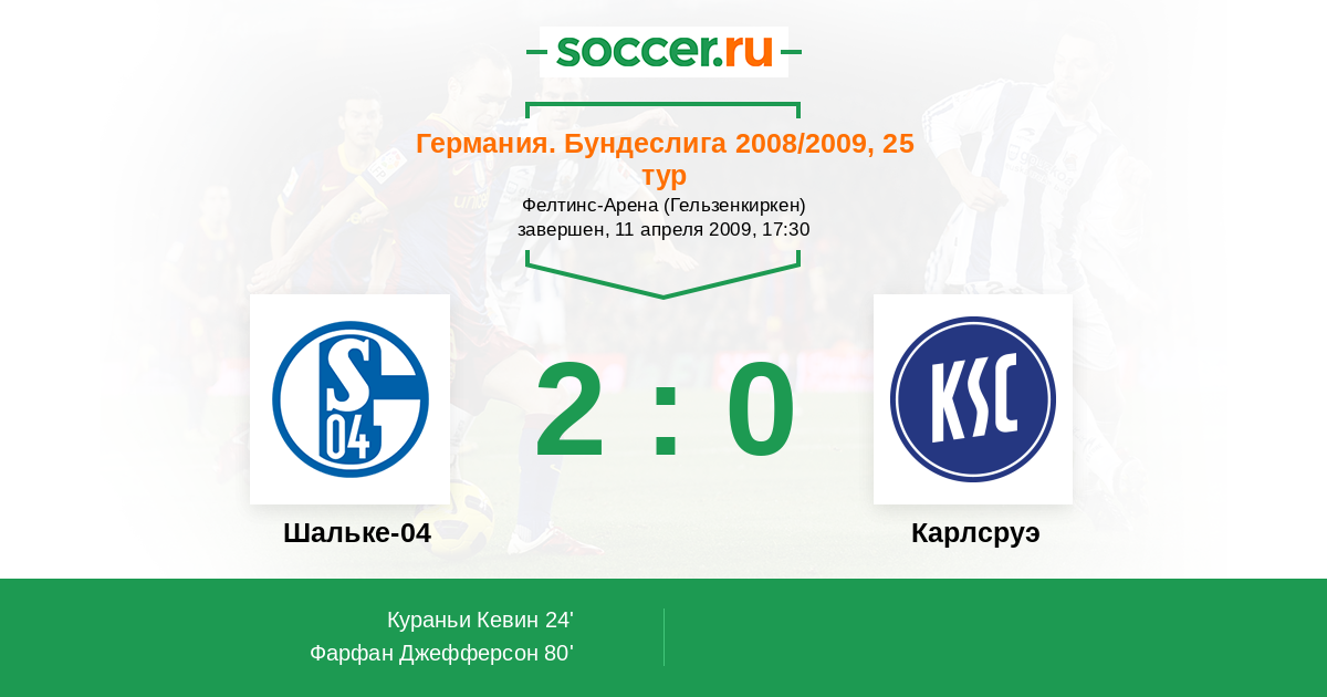 Германия. Бундеслига 29.03.2008 Карлсруэ Логотип футбольный клуб Карлсруэ 0:0 Логотип футбольный клуб Шальке-04 (Гельзенкирхен) Шальке-04