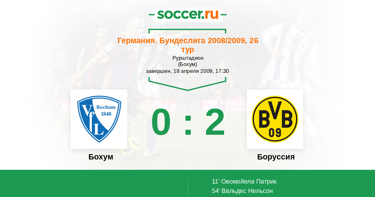 Германия. Бундеслига 18.10.2009 Боруссия Логотип футбольный клуб Боруссия (Дортмунд) 2:0 Логотип футбольный клуб Бохум Бохум