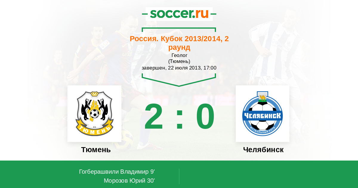Россия. Вторая лига. Группа 4 18.07.2013 Челябинск Логотип футбольный клуб Челябинск 0:1 Логотип футбольный клуб Тюмень Тюмень