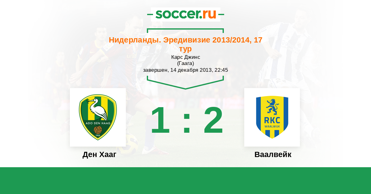Нидерланды. Эредивизи 09.03.2014 Ваалвейк Логотип футбольный клуб Ваалвейк (Валвейк) 1:1 Логотип футбольный клуб Ден Хааг (Гаага) Ден Хааг