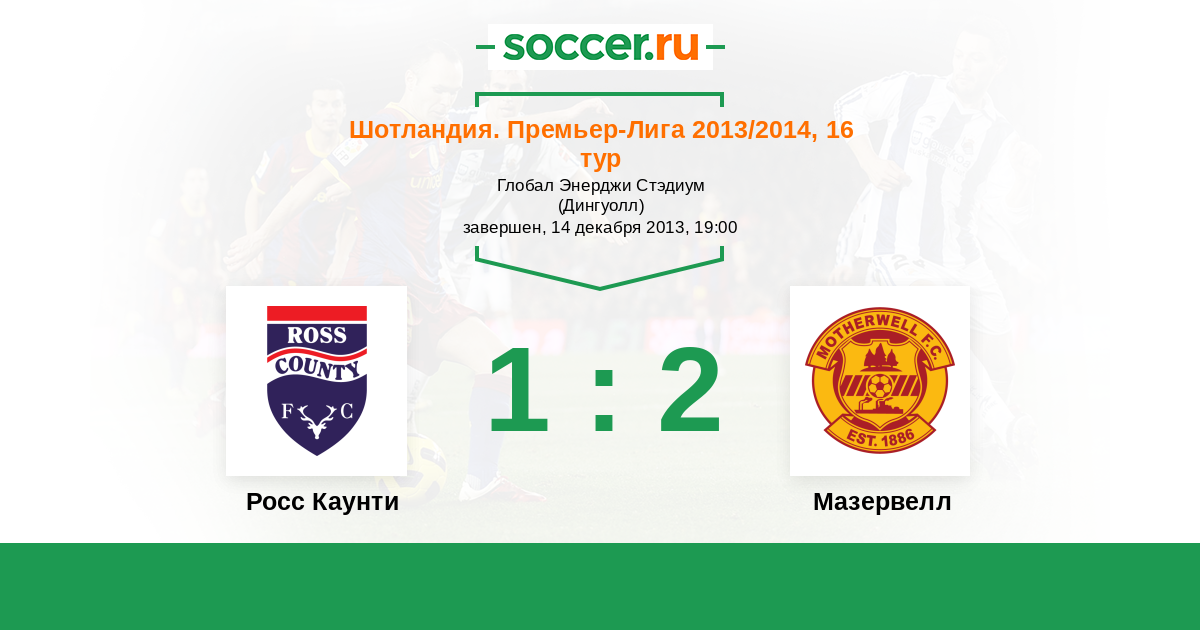 Шотландия. Премьер-Лига 13.12.2014 Мазервелл Логотип футбольный клуб Мазервелл 2:2 Логотип футбольный клуб Росс Каунти (Дингволл) Росс Каунти