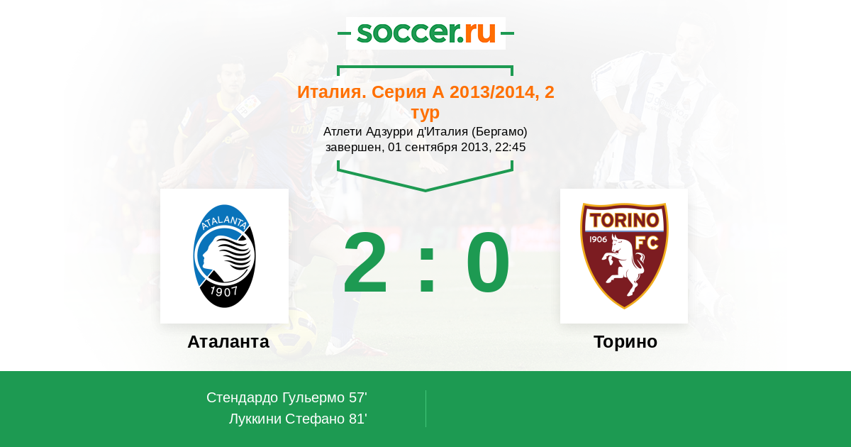 Италия. Серия А 26.01.2014 Торино Логотип футбольный клуб Торино (Турин) 1:0 Логотип футбольный клуб Аталанта (Бергамо) Аталанта
