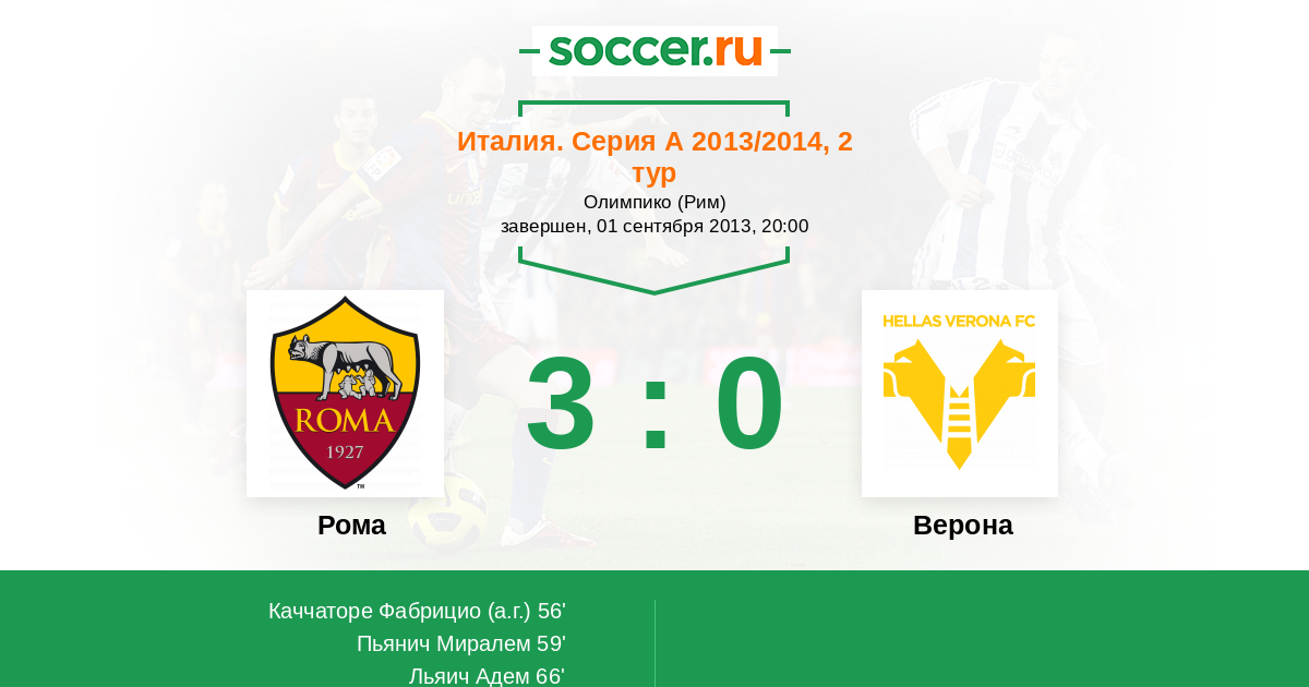 Италия. Серия А 27.09.2014 Рома Логотип футбольный клуб Рома (Рим) 2:0 Логотип футбольный клуб Верона Верона
