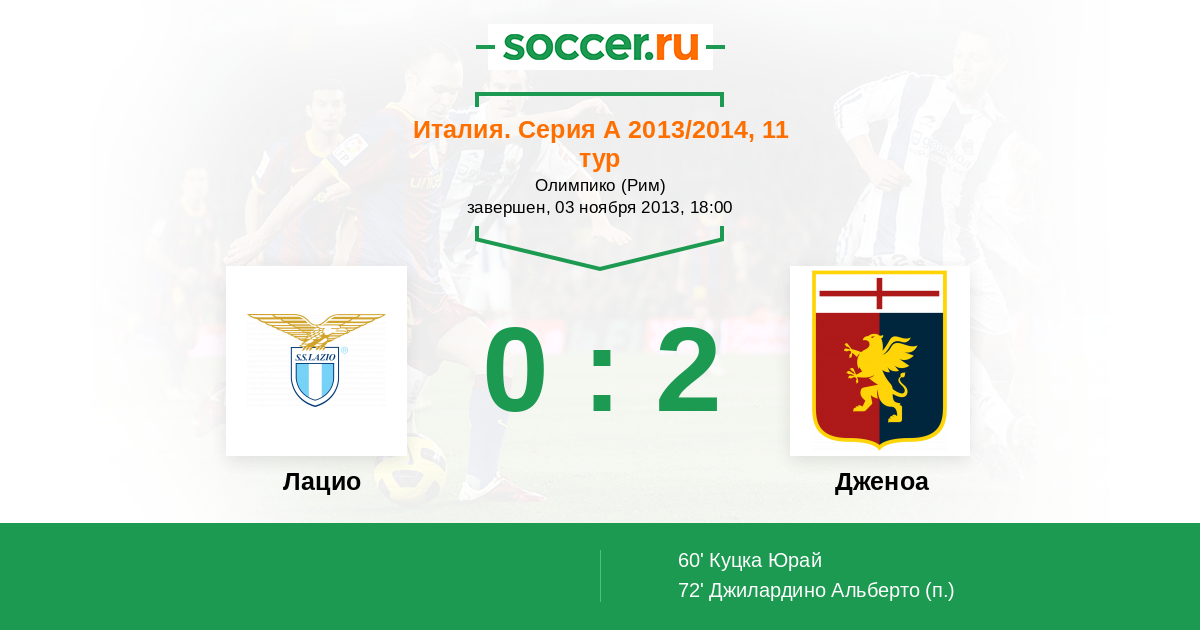 Италия. Серия А 26.03.2014 Дженоа Логотип футбольный клуб Дженоа (Генуя) 2:0 Логотип футбольный клуб Лацио (Рим) Лацио