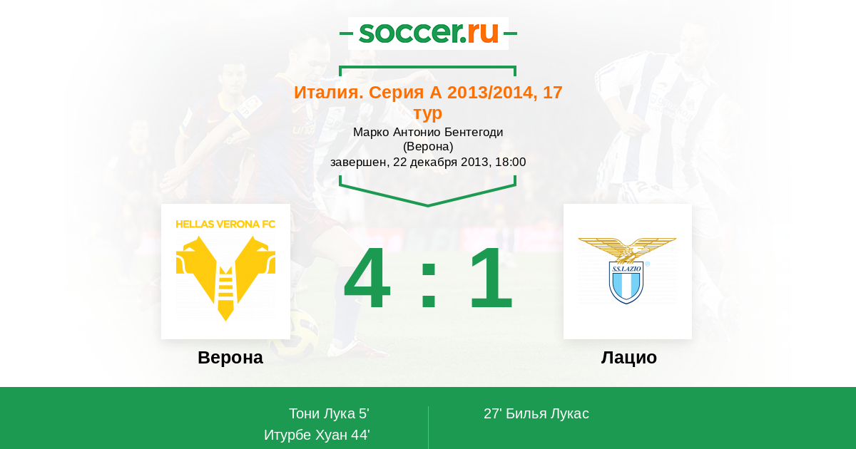 Италия. Серия А 05.05.2014 Лацио Логотип футбольный клуб Лацио (Рим) 3:3 Логотип футбольный клуб Верона Верона