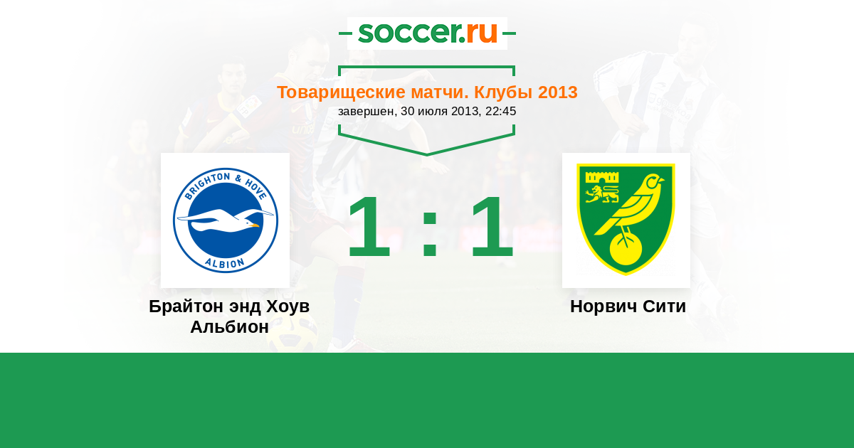 Англия. Чемпионшип 03.04.2015 Брайтон энд Хоув Альбион Логотип футбольный клуб Брайтон энд Хоув Альбион 0:1 Логотип футбольный клуб Норвич Сити Норвич Сити