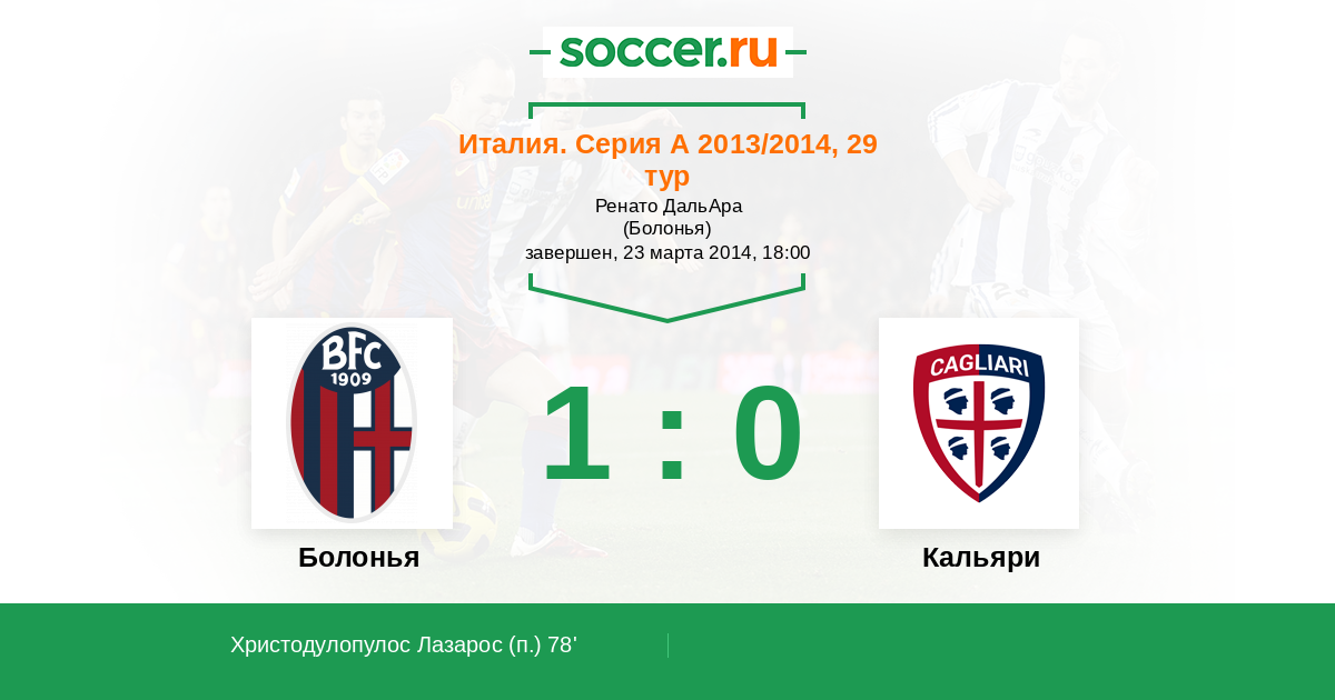 Италия. Серия А 30.10.2013 Кальяри Логотип футбольный клуб Кальяри 0:3 Логотип футбольный клуб Болонья Болонья