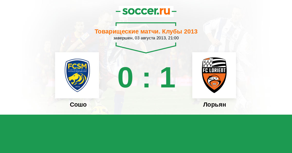 Франция. Лига 1 04.05.2013 Сошо Логотип футбольный клуб Сошо (Монбельяр) 1:0 Логотип футбольный клуб Лорьян Лорьян