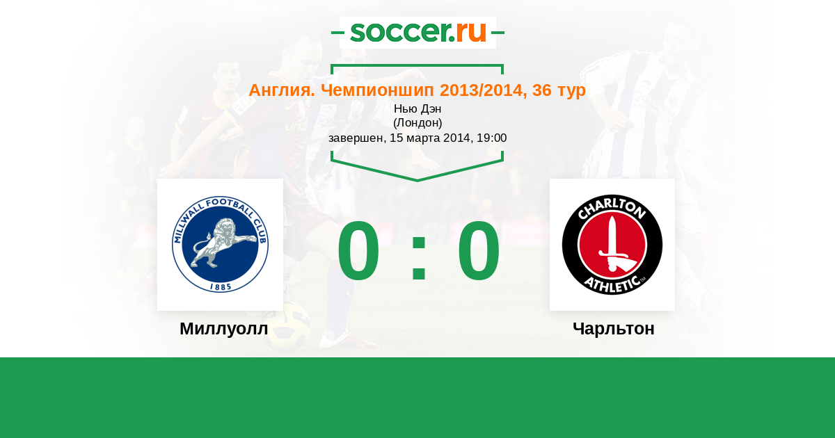 Англия. Чемпионшип 01.12.2012 Миллуолл Логотип футбольный клуб Миллуолл (Лондон) 0:0 Логотип футбольный клуб Чарльтон Чарльтон