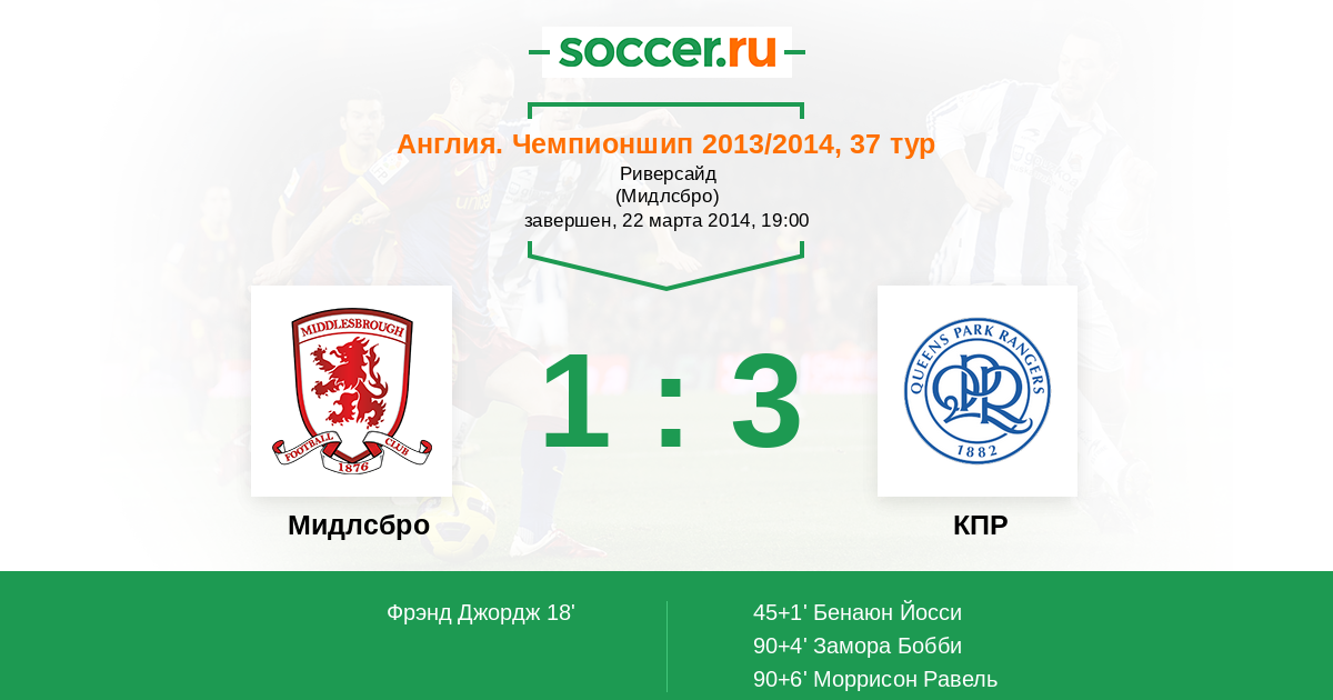 Англия. Чемпионшип 28.09.2013 КПР Логотип футбольный клуб КПР (Лондон) 2:0 Логотип футбольный клуб Мидлсбро Мидлсбро