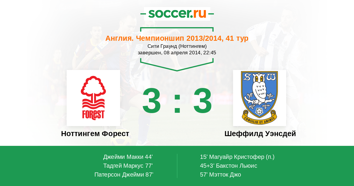 Англия. Чемпионшип 12.03.2016 Ноттингем Форест Логотип футбольный клуб Ноттингем Форест 0:3 Логотип футбольный клуб Шеффилд Уэнсдей Шеффилд Уэнсдей