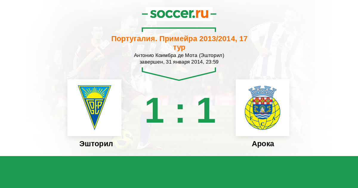 Португалия. Примейра 18.08.2014 Арока Логотип футбольный клуб Арока 1:1 Логотип футбольный клуб Эшторил Эшторил