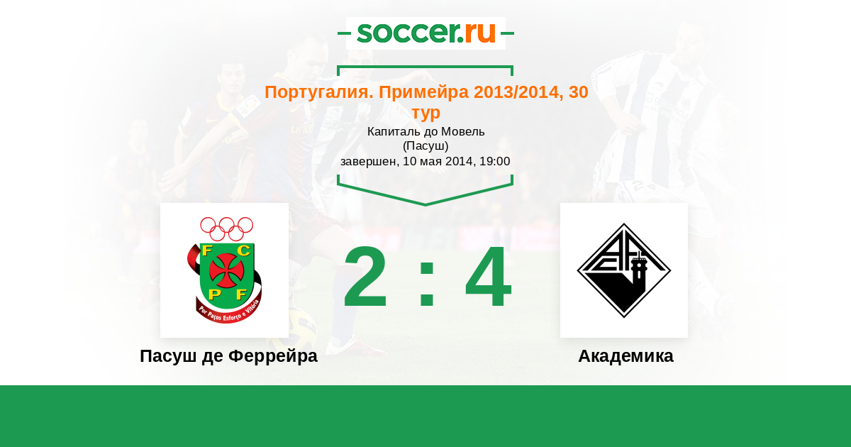 Португалия. Примейра 12.01.2014 Академика Логотип футбольный клуб Академика (Коимбра) 4:2 Логотип футбольный клуб Пасуш де Феррейра Пасуш де Феррейра