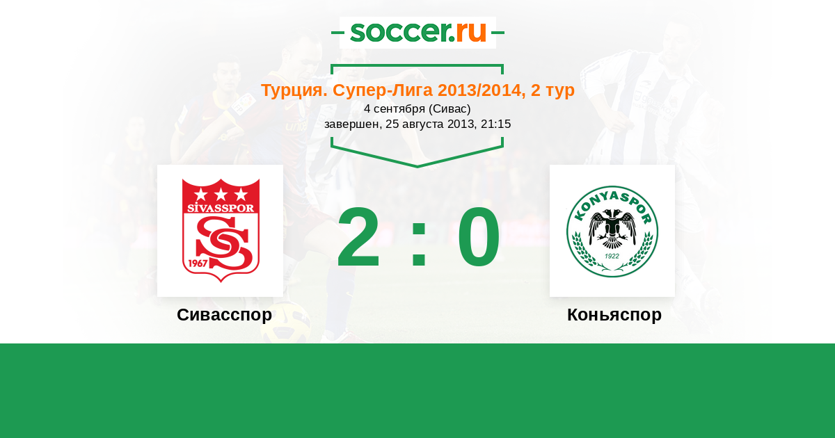 Турция. Суперлига 21.09.2014 Сивасспор Логотип футбольный клуб Сивасспор 0:0 Логотип футбольный клуб Коньяспор Коньяспор
