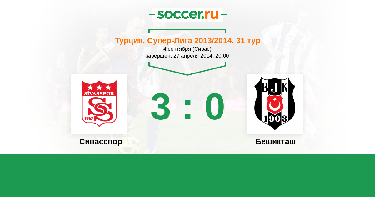 Турция. Суперлига 09.12.2013 Бешикташ Логотип футбольный клуб Бешикташ (Стамбул) 1:1 Логотип футбольный клуб Сивасспор Сивасспор