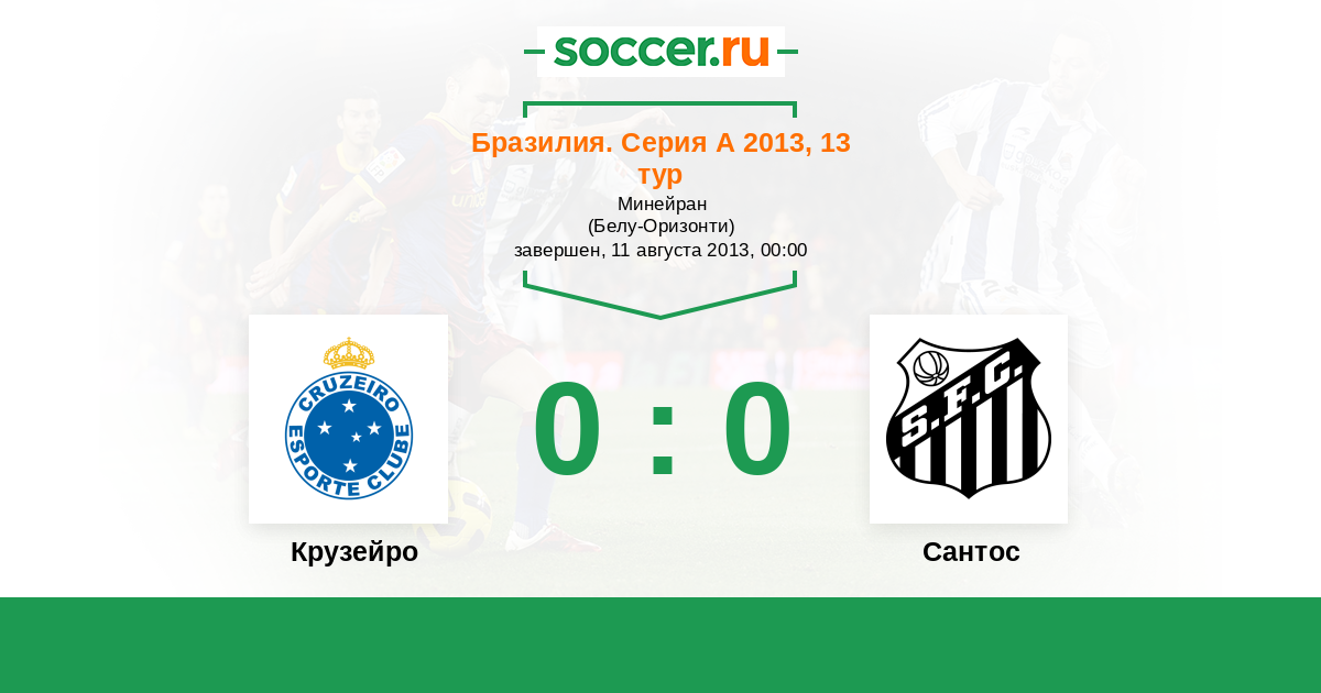 Бразилия. Серия А 09.08.2012 Сантос Логотип футбольный клуб Сантос (Сан-Паулу) 4:2 Логотип футбольный клуб Крузейро (Белу-Оризонти) Крузейро