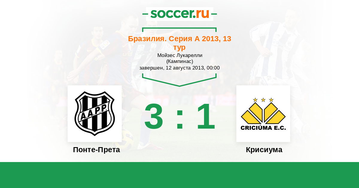 Копа Судамерикана 27.08.2013 Понте-Прета Логотип футбольный клуб Понте-Прета (Кампинас) 0:0 Логотип футбольный клуб Крисиума Крисиума