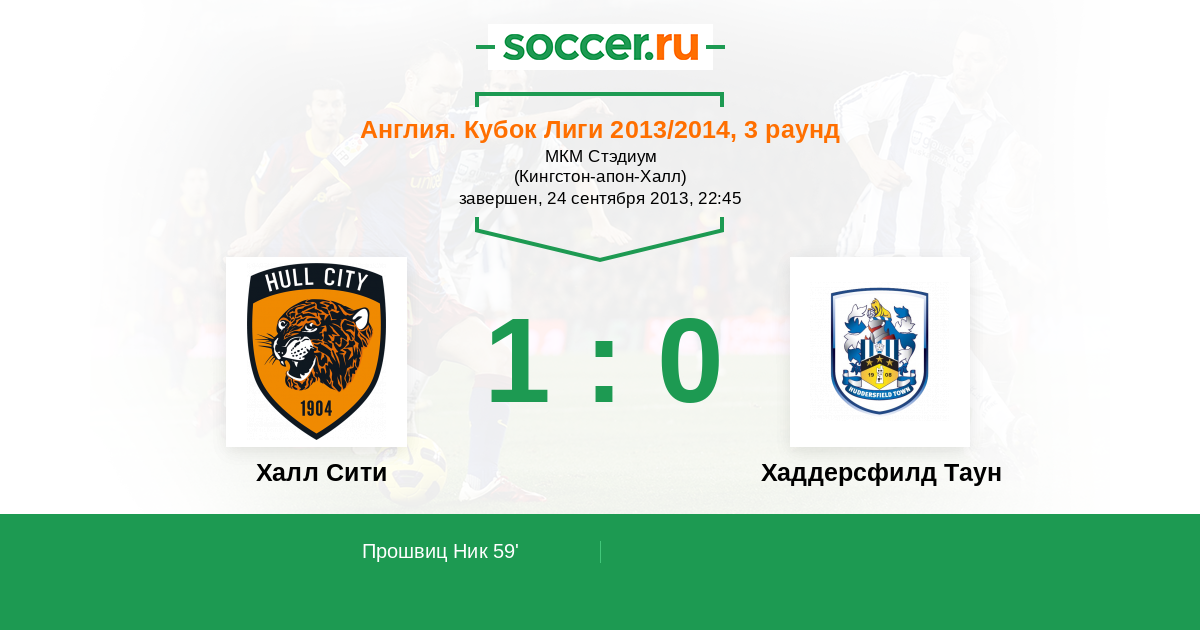 Англия. Чемпионшип 15.12.2012 Халл Сити Логотип футбольный клуб Халл Сити (Кингстон-апон-Халл) 2:0 Логотип футбольный клуб Хаддерсфилд Таун Хаддерсфилд Таун