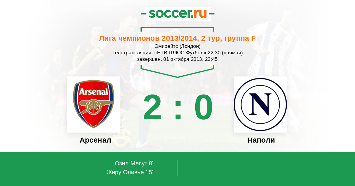 Телетрансляция: «НТВ ПЛЮС Футбол» 22:30 (прямая)