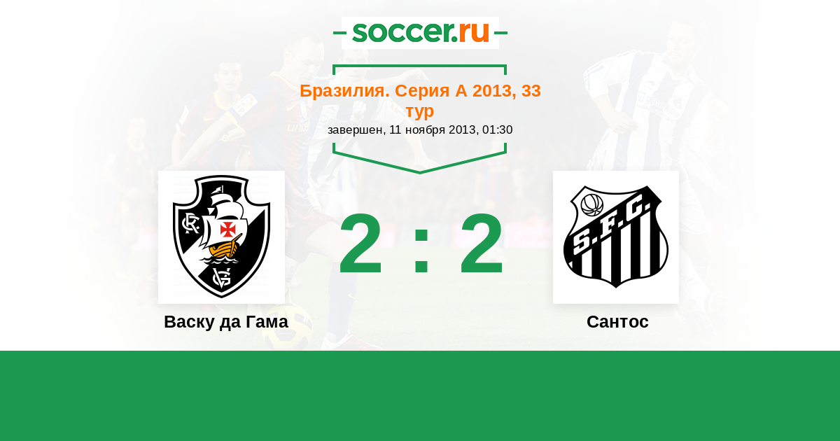 Бразилия. Серия А 15.08.2013 Сантос Логотип футбольный клуб Сантос (Сан-Паулу) 1:1 Логотип футбольный клуб Васку да Гама (Рио-де-Жанейро) Васку да Гама