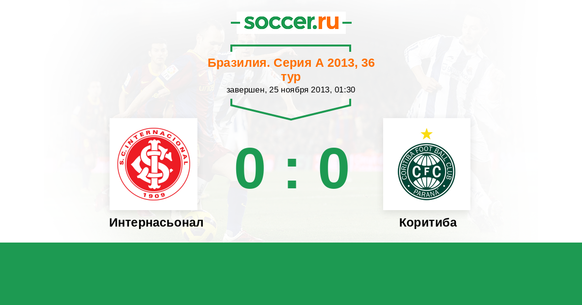 Бразилия. Серия А 01.09.2013 Коритиба Логотип футбольный клуб Коритиба 0:0 Логотип футбольный клуб Интернасьонал (Порту-Алегри) Интернасьонал