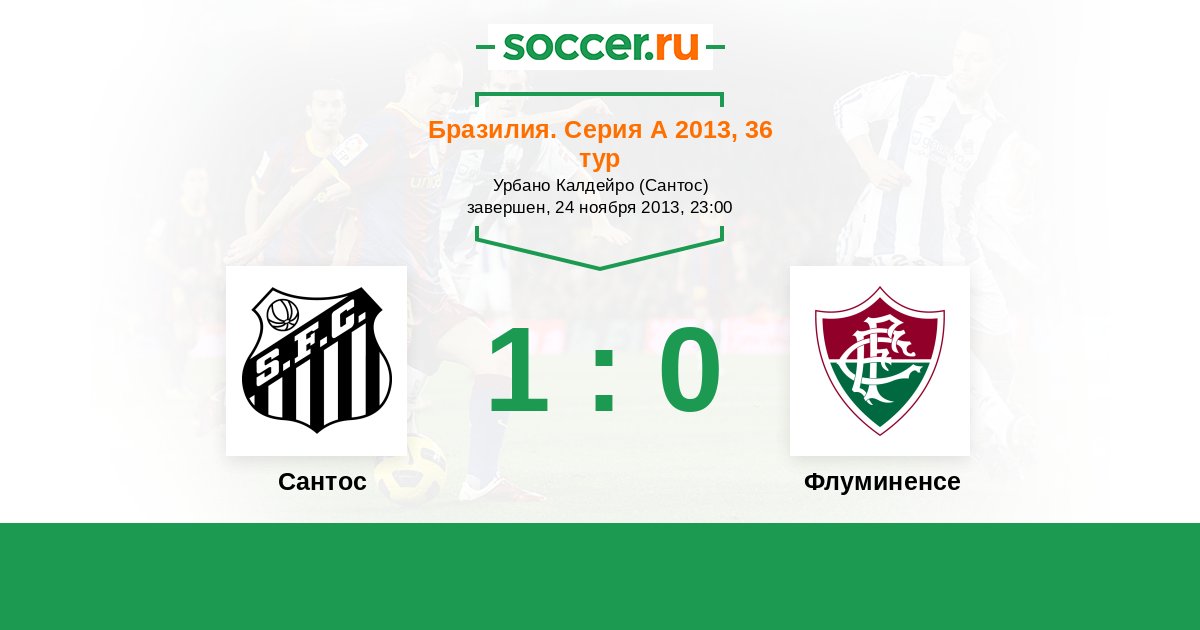 Бразилия. Серия А 01.09.2013 Флуминенсе Логотип футбольный клуб Флуминенсе (Рио-де-Жанейро) 0:2 Логотип футбольный клуб Сантос (Сан-Паулу) Сантос