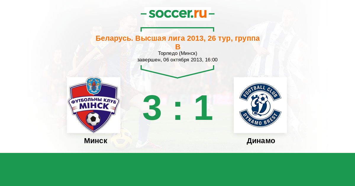 Беларусь. Высшая лига 21.07.2013 Динамо Логотип футбольный клуб Динамо (Брест) 1:1 Логотип футбольный клуб Минск Минск