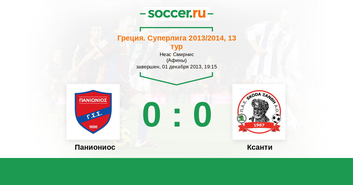 Греция. Суперлига 23.03.2014 Ксанти Логотип футбольный клуб Ксанти 2:0 Логотип футбольный клуб Паниониос (Афины) Паниониос