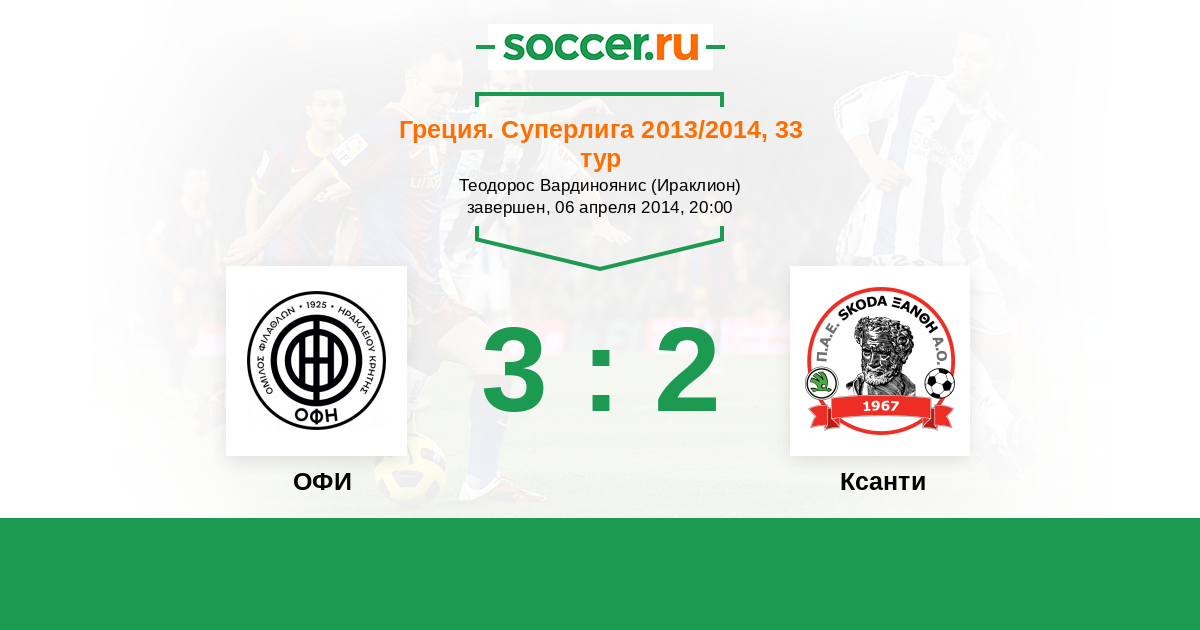 Греция. Суперлига 18.12.2013 Ксанти Логотип футбольный клуб Ксанти 2:1 Логотип футбольный клуб ОФИ (Ираклион) ОФИ