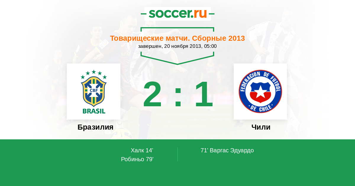 Товарищеские матчи. Сборные 25.04.2013 Бразилия Логотип Бразилия 2:2 Логотип Чили Чили