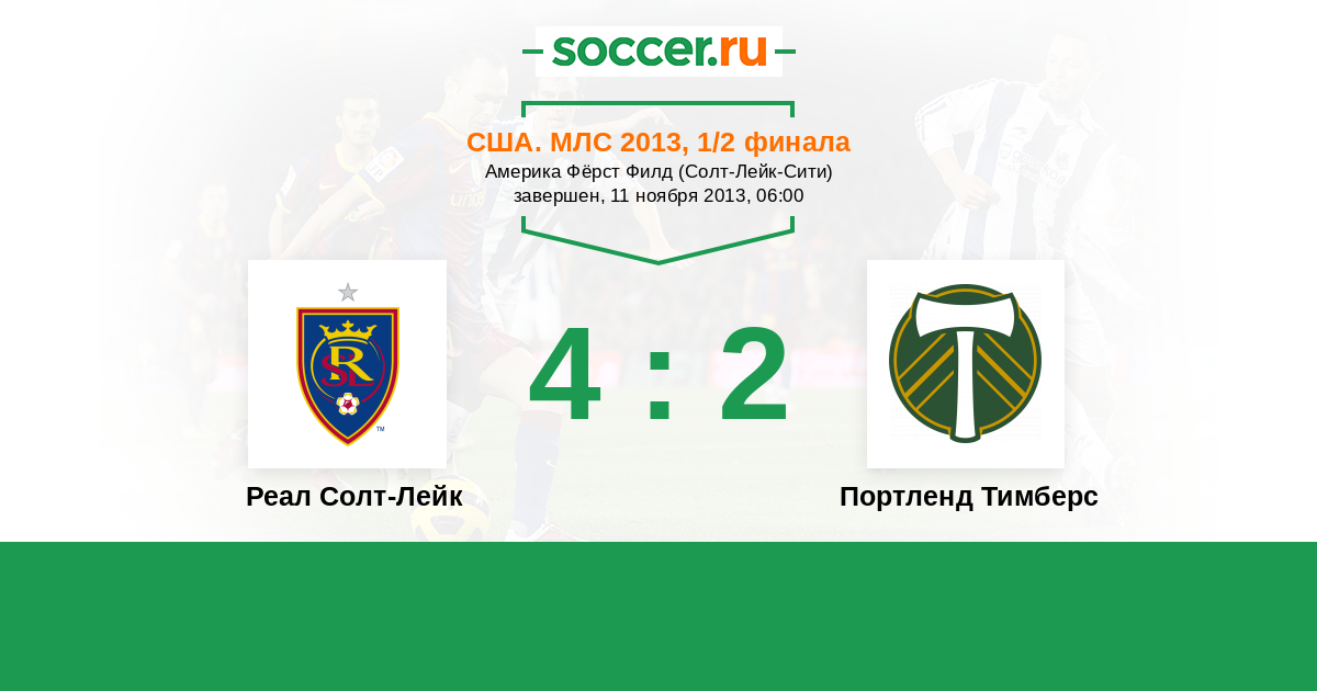 США. МЛС 31.08.2013 Реал Солт-Лейк Логотип футбольный клуб Реал Солт-Лейк (Солт-Лейк-Сити) 4:2 Логотип футбольный клуб Портленд Тимберс Портленд Тимберс